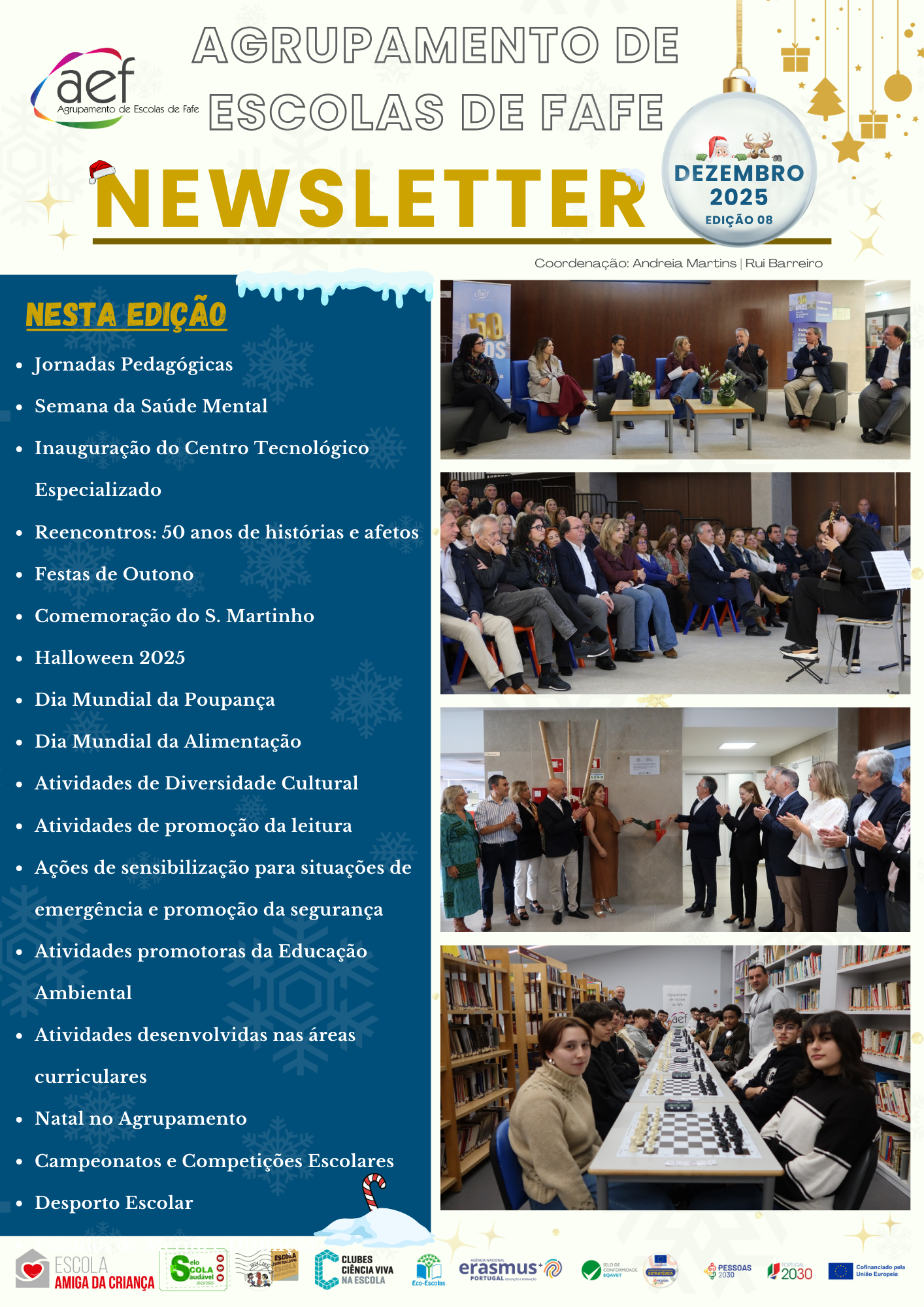 ESF - Reencontros: 50 Anos de Histórias e AfetosCONVITEA Diretora do Agrupamento de Escolas de Fafe, Dra. Natália Correia, tem o prazer de convidar todos aqueles que, ao longo destes 50 anos, estudaram ou trabalharam na nossa escola, a estarem presentes no evento “Reencontros: 50 anos de Histórias e Afetos”, dia 7 de novembro, pelas 17.30h, no Polivalente da Escola Secundária de Fafe, seguido de Jantar Comemorativo do 50.º Aniversário, pelas 20h. Este evento será uma oportunidade para reencontrar alunos, professores, funcionários e amigos, celebrar a história da nossa escola e partilhar memórias que marcaram gerações. Contamos com a sua presença para, juntos, celebrarmos este marco histórico da nossa comunidade escolar. Clique aqui para fazer a inscrição Clique aqui para fazer a inscrição
